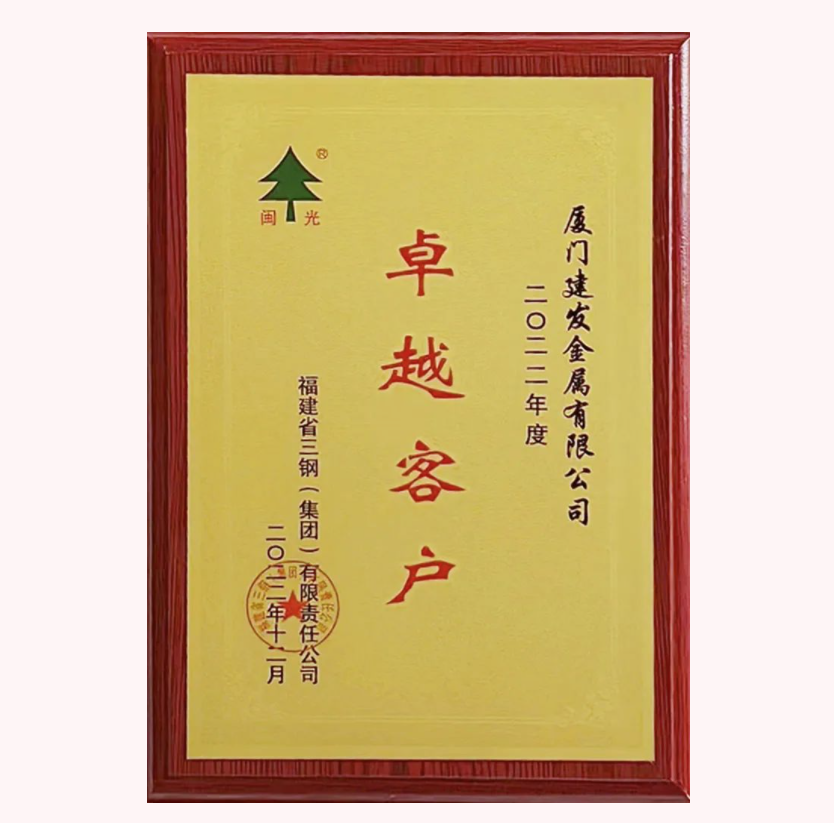 建發(fā)金屬獲評三鋼集團“卓越客戶(hù)”榮譽(yù)稱(chēng)號